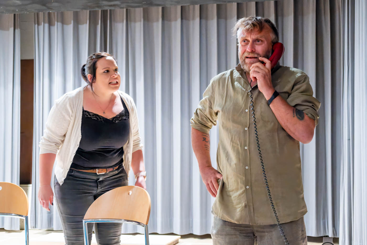 Zum dritten Mal führt Tina Münch Regie in Mittelneufnach. Mit ihrem Gespür für Details, Witz und Timing bringt sie die besondere Mischung aus schwarzem Humor und rasendem Tempo, für die Ray Cooneys Stücke bekannt sind, auf unsere Bühne.