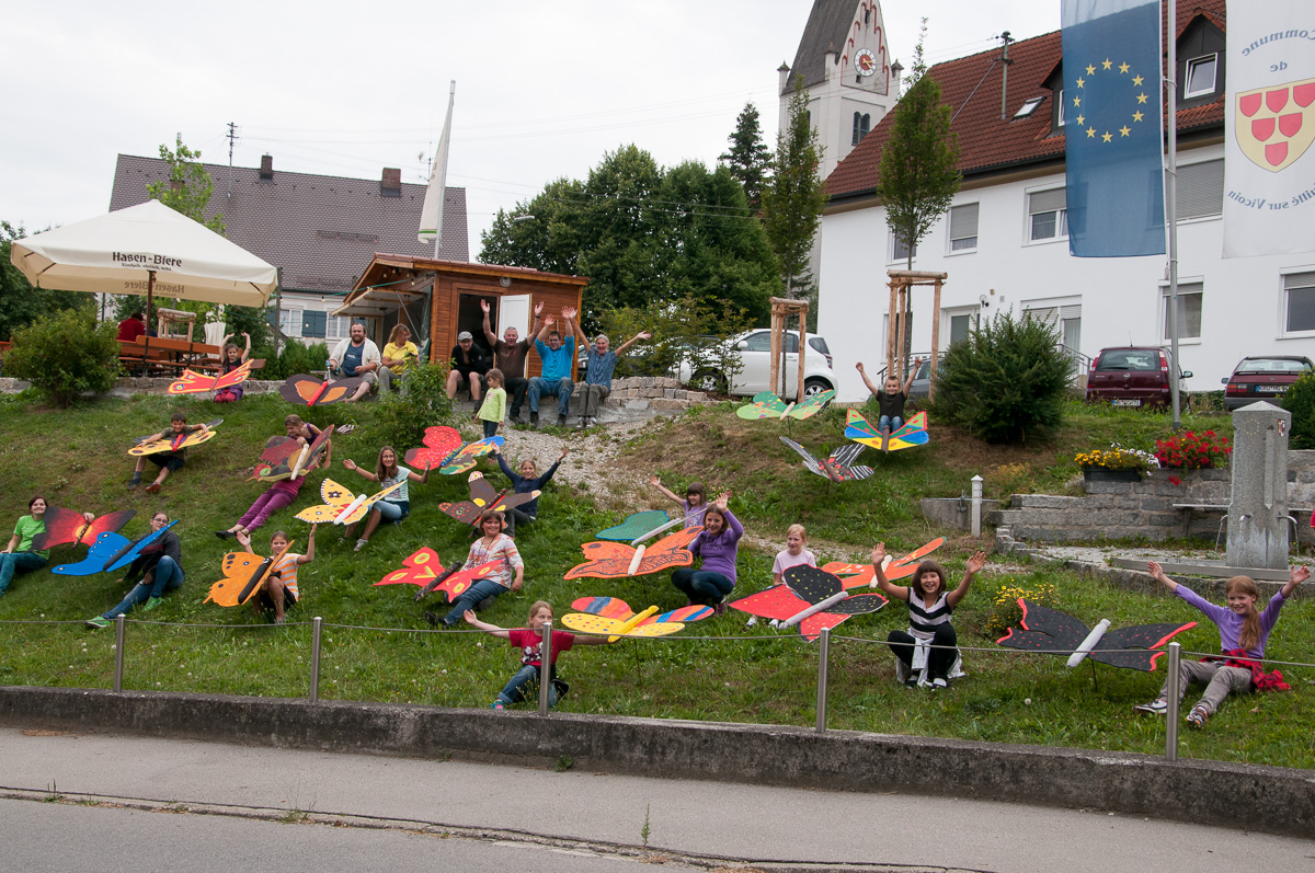 Am ersten Ferienwochenende gestalteten 19 Kinder aus Mittelneufnach eine wunderschöne "Schmetterlingswiese" am Dorfbrunnen. Selbstgebastelt von Anfang bis Ende ein toller Anblick!
